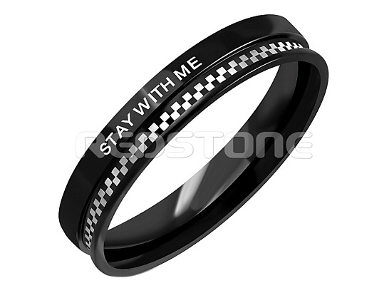 Obroučka z chirurgické oceli v černém provedení se šachovnicovým vzorem a nápisem STAY WITH ME.
