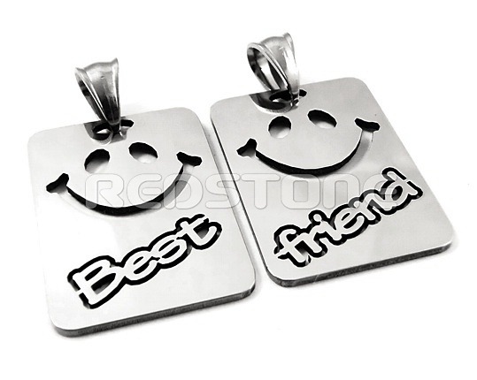 Sada dvou přívěsků BEST FRIEND se smajlíky, přívěsky jsou vyrobeny z chirurgické oceli s lesklým povrchem Rozměr přívěsků jednotlivě: 23 x 32 mm.
