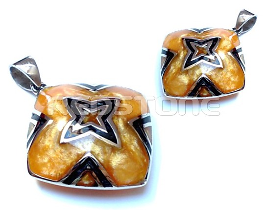 Přívěsek z chirurgické oceli v kombinaci s pryskyřicí.