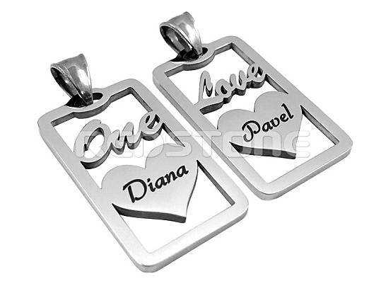 Sada dvou přívěsků pro páry, přívěsky ONE LOVE z chirurgické oceli s jmény dle Vašeho zadání.
