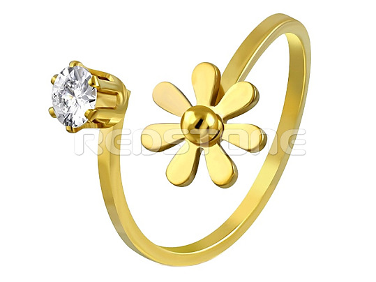 Pozlacený prsten z chirurgické oceli v lesklém provedení s kvítkem a zirkonem.